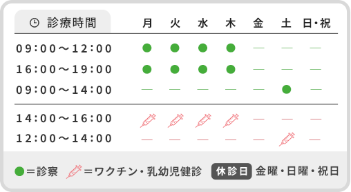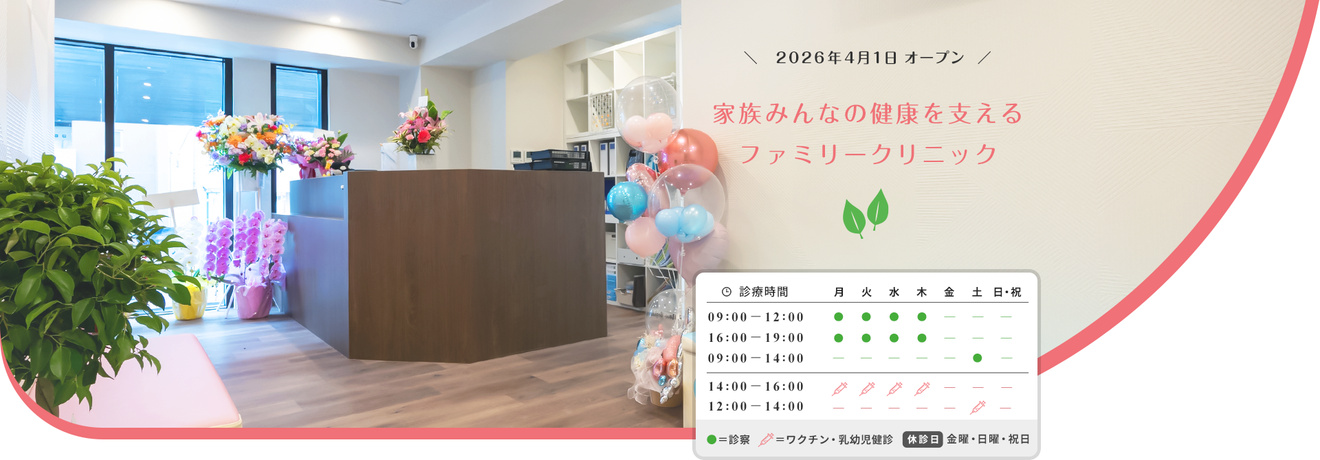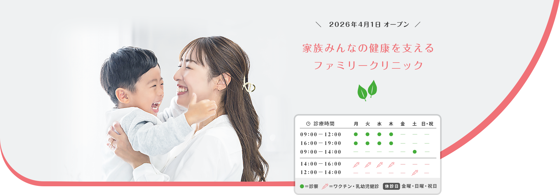 小児科・内科を中心に、日常の体調不良から健康相談まで幅広く対応し、ご家族皆さまの健康をサポートいたします。